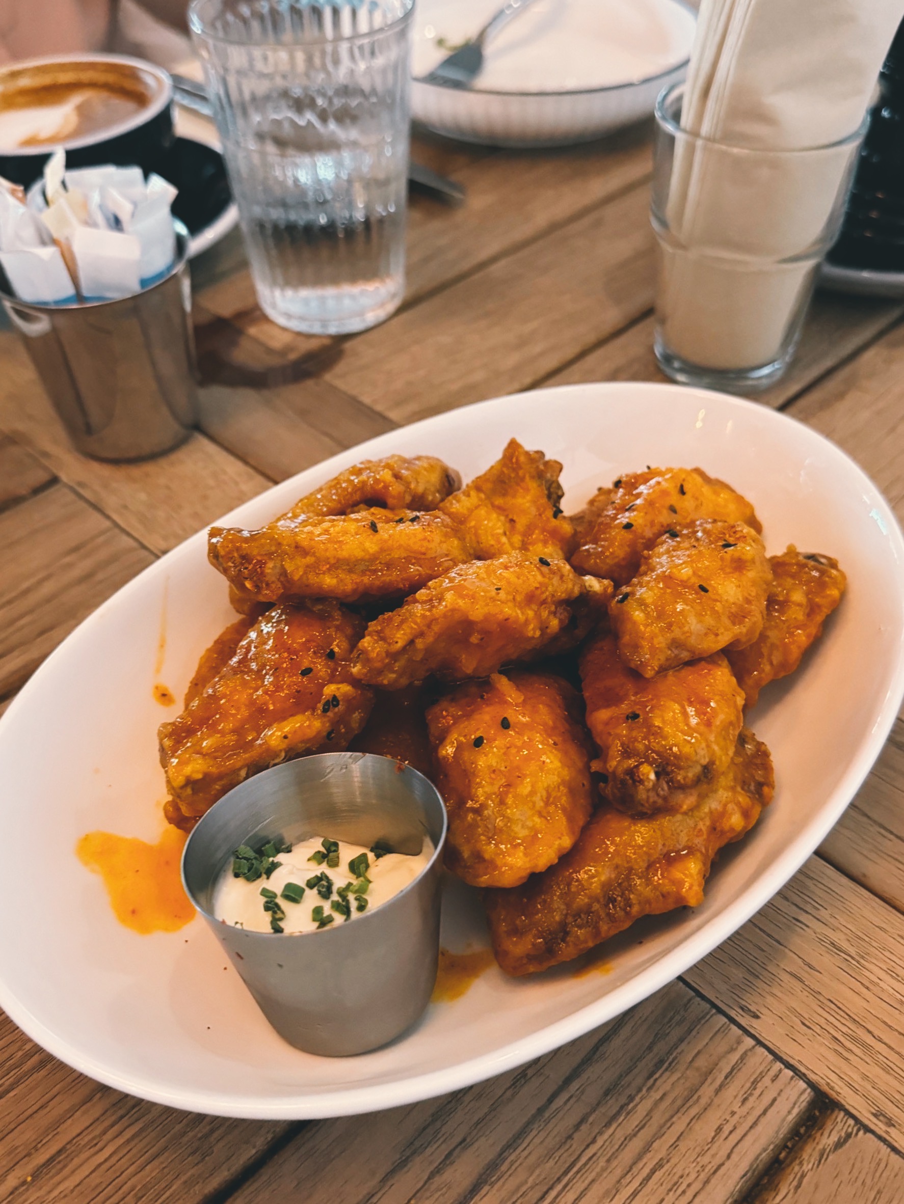 上圖這道是今年和朋友到訪時點的炸雞翅。一旁的酸奶醬很開胃,我們一行人一下就把它給抹得乾乾淨淨。