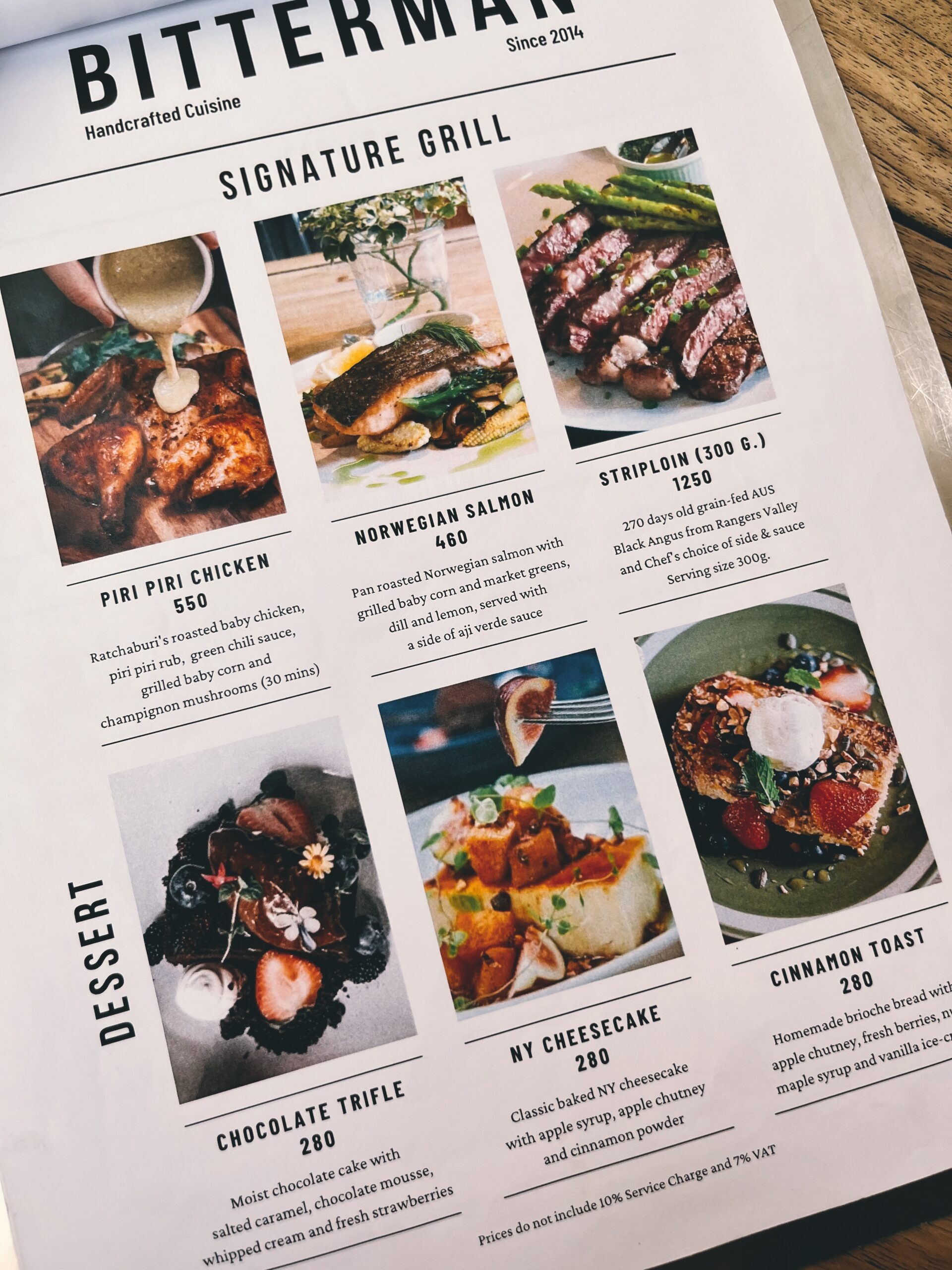 會讓我們一再回訪的原因不只是環境而已。Bitterman的餐點從我們多年前第一次到訪直到現在,從來沒有一次讓人失望。餐點主要是以西式料理為主體,配上一些泰國元素,屬於比較fusion的形式。價位的部分,以相同的份量、使用的食材等等,相比台北同等級的餐廳,大部分餐點大概是八折左右的價格區間。