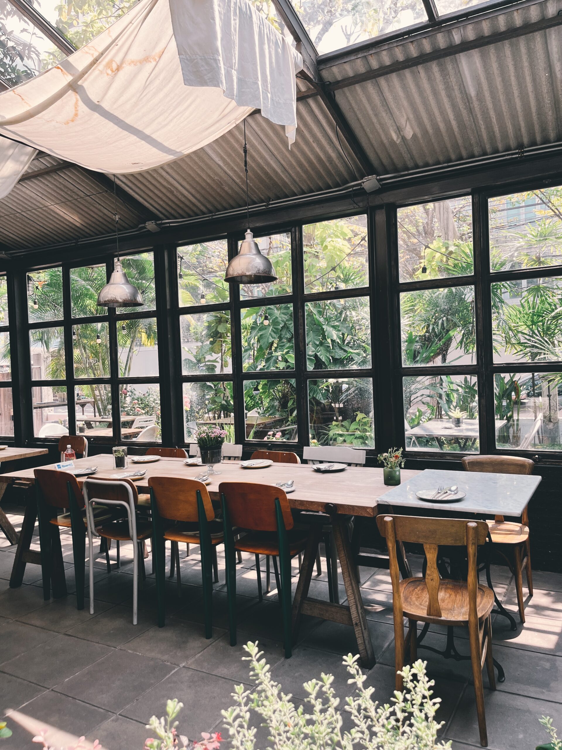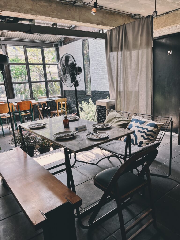 這張桌子的隔壁區域,也是讓我當初被Bitterman吸引而來的原因。屋頂上方有部分以透明的採光罩取代原有的遮蔽式建材,讓陽光得以大片灑落在室內,營造出一種午後的靜謐之感。曼谷最不缺的就是陽光,因此當地許多店家都十分懂得引導光線配合著室內空間和軟裝搭配,成為一幅隨處皆美的畫面。