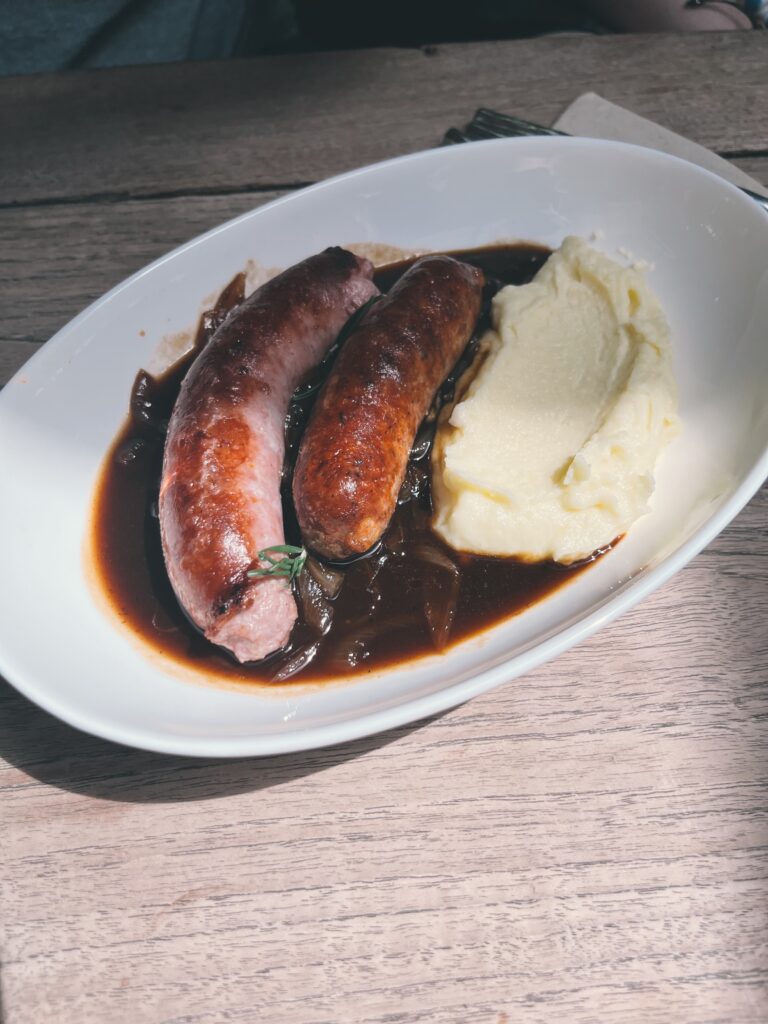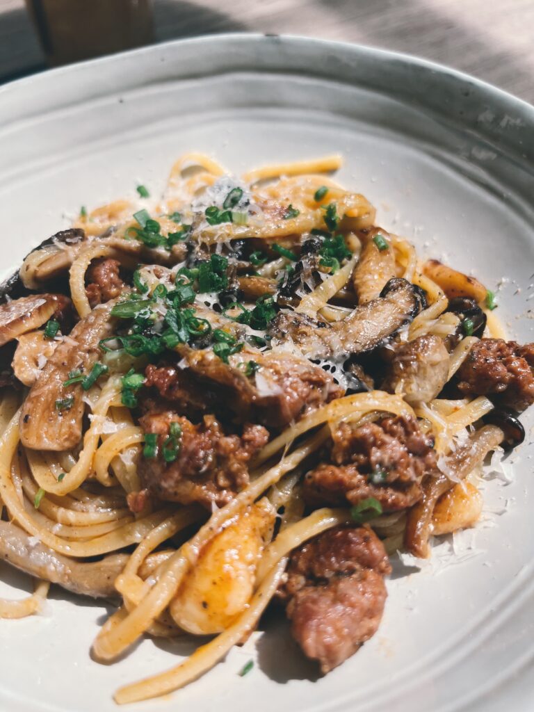 上圖是去年(2023年)九月左右,帶妹妹們和媽媽到曼谷旅遊時,妹妹點的義大利麵。印象中口味不算突出。反倒是下方的德式香腸佐薯泥讓三妹很是滿意。